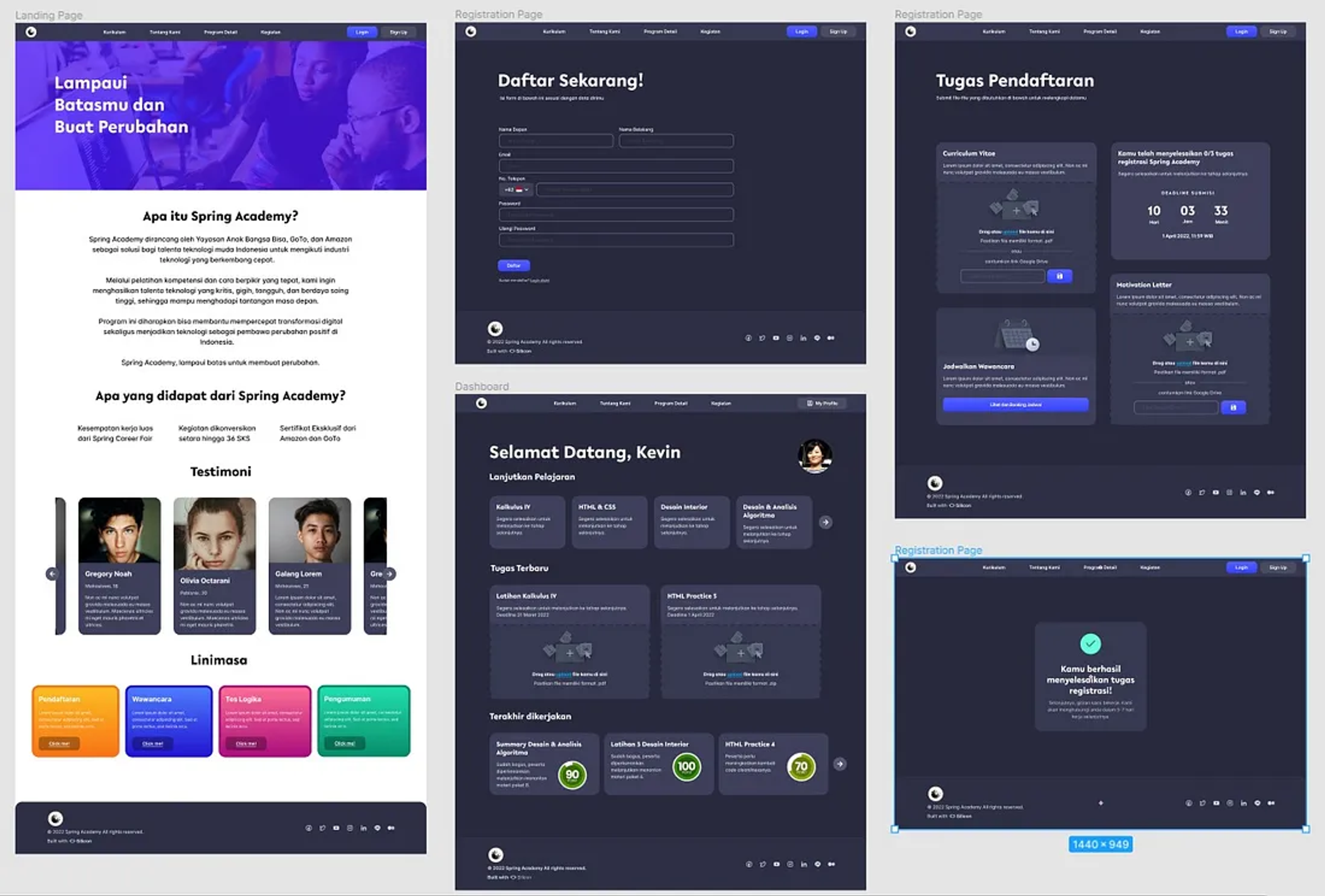 Spring Academy is a fictional coding bootcamp platform which provides high quality coding training for free for students and people of Indonesia. In this project, I worked as a UI/UX Designer tasked to find and redesign problems found on the website in order to improve the user’s, in this case students, experience when exploring the Academy’s program, signing up for the program, and progressing in the Spring Academy program.